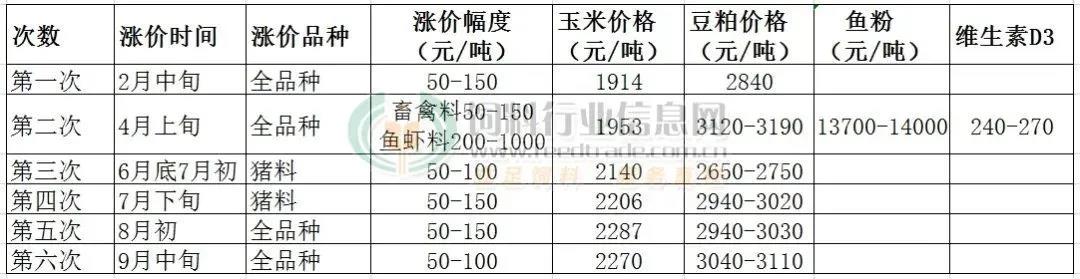 从年初至今,饲料价格已经上调6次,普遍涨幅50-150。