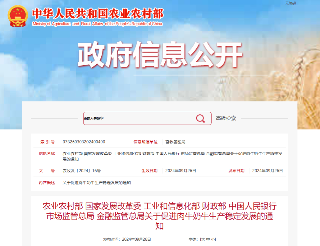 近日,农业农村部、国家发展改革委、工业和信息化部、财政部、中国人民银行、市场监管总局、金融监管总局联合印发《关于促进肉牛奶牛生产稳定发展的通知》(以下简称《通知》),对稳定肉牛奶牛生产作出部署,帮助养殖场户渡过难关。