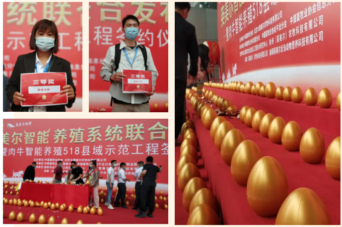 英美尔在发布会现场设置了砸金蛋游戏环节,观众跃跃欲试,玩得不亦乐乎,共送出价值9800元的标准化智能养殖系统200份。