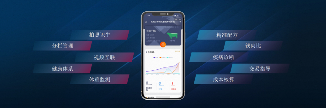 智能养殖可以在很大程度上减轻养殖用户的负担。拍照识牛基于强大的物种外貌数据库,能够帮助新手快速识别肉牛品种;精准配方服务参考原料行情,帮助用户以更低的成本计算出营养均衡的饲料配方;成本核算结合称重记录,得出单位增重所需要的投入,及时发现问题,掌握投入产出比。