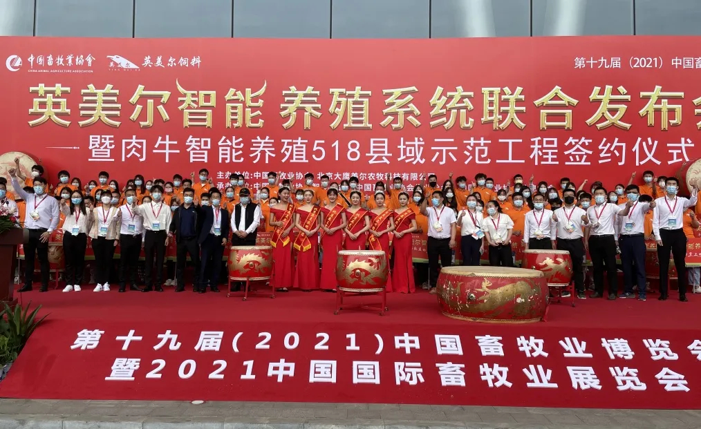 由中国畜牧业协会、北京大鹰美尔农牧科技有限公司联合主办的英美尔智能养殖养殖系统联合发布会暨肉牛智能养殖518县域示范工程签约仪式,于第19届中国畜牧业博览会在江西南昌绿地国际博览中心举行。本届畜博会规模空前,占地16.5万平方米,容纳了8千多个展位,参会人员多达20万。各路展商齐聚革命圣地,奉献了一场包罗万象、精彩纷呈的行业博览盛会。