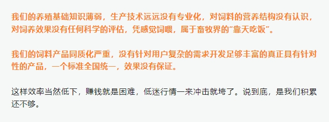 饲料做得久了,见得多了,总会有一些不甘心,为什么中国养殖户赚钱这么难?为此我们能做点什么?