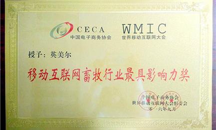 英美尔获“移动互联网最具畜牧行业影响力奖...